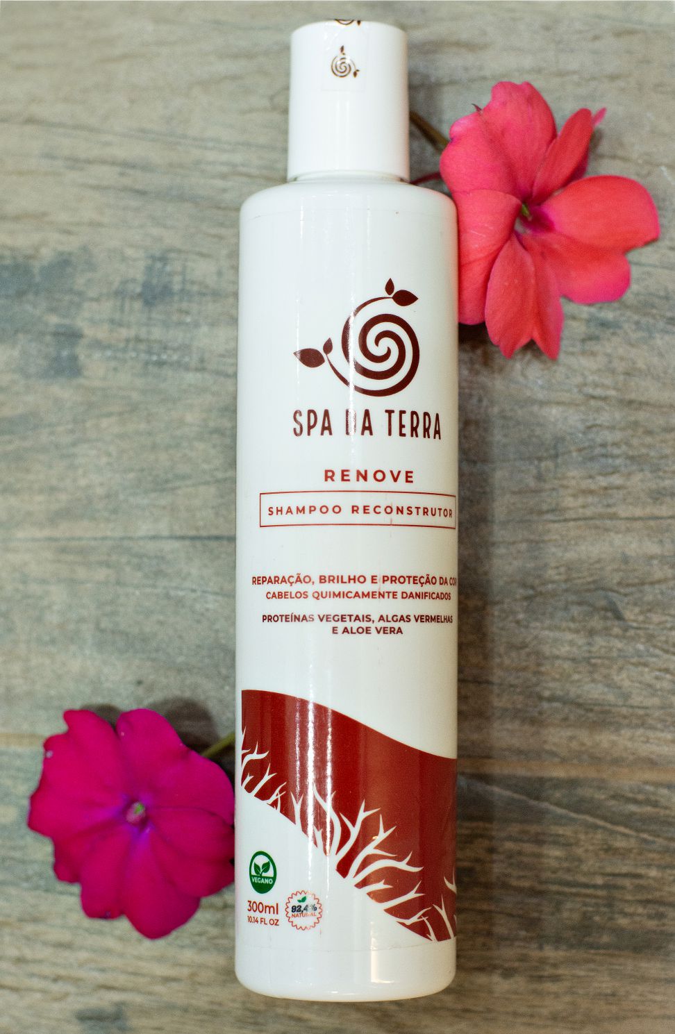 Spa da Terra Renove Shampoo Reconstrutor foi desenvolvido a partir de matérias primas suaves para cuidar especialmente dos cabelos quimicamente tratados ou danificados por agentes externos, pois um cabelo fragilizado precisa cuidados especiais. Possui um rico complexo de aminoácidos composto por arginina, cisteína, glicina, tirosina, entre outros, que reconstroem a fibra capilar, preenchendo massa. Algas vermelhas, que hidratam intensamente e protegem a cor do cabelo. Aloe Vera, planta conhecida milenarmente por suas propriedades hidratante e regeneradora e Chá Verde que é antioxidante. Óleos de Coco e Monoi do Tahiti, que proporcionam nutrição e proteção à fibra capilar. Resultado: cabelos macios, com muito brilho e a cada dia mais saudáveis.